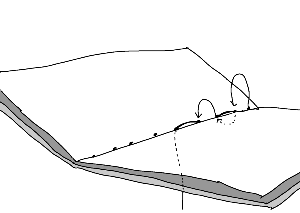 ⑩端まで縫い進んだら、また帰ってきます。